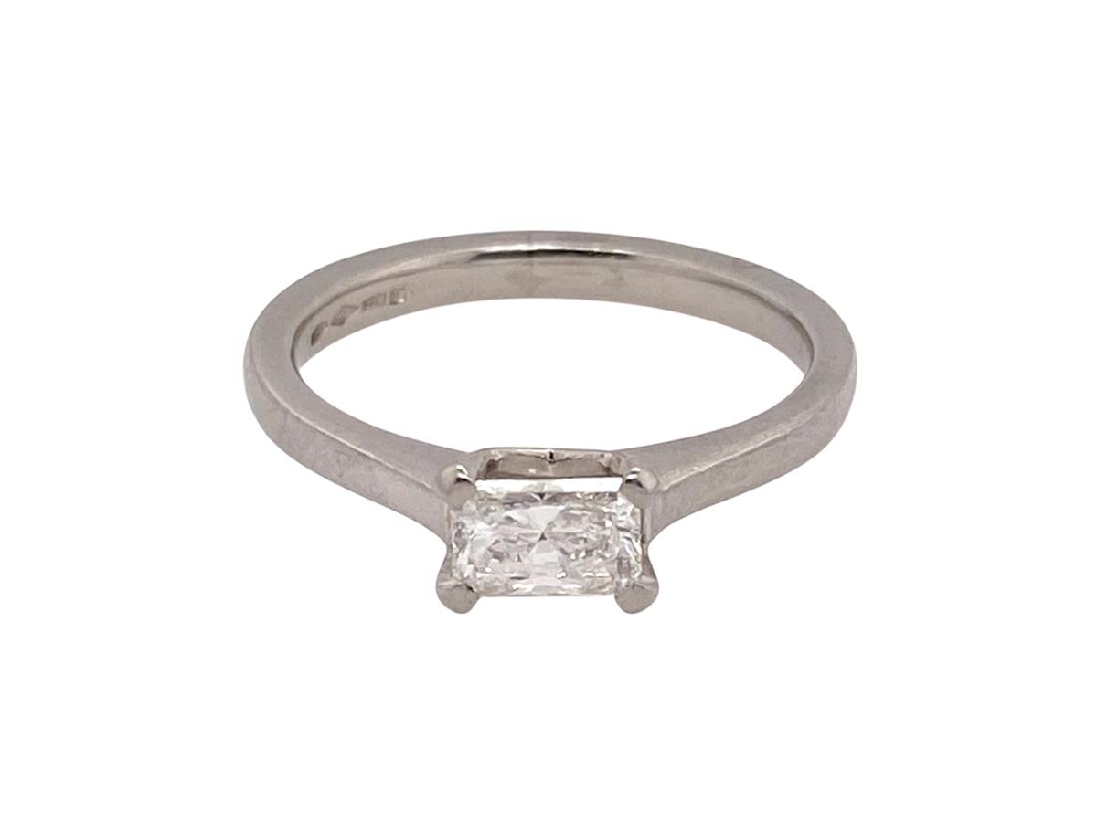 A vintage Hallmarked Platinum solitaire set with a top quality Radiant Cut Diamond, assessed as 0.50cts - With a colour / clarity assessed as G/H- vs2/sil, this warrants an Insurance Valuation replacement Certificate for £2,750 - AVAILABLE ON REQUEST.